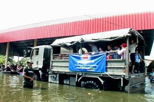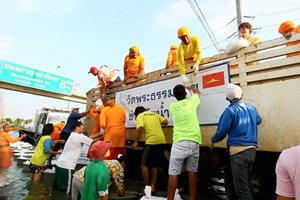 ภาพข่าว พระสงฆ์ และ เจ้าหน้าที่วัดพระธรรมกายช่วยน้ำท่วม