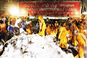 วัดพระธรรมกาย บริจาคถุงทรายเพิ่ม 100,000 ถุง แก่หน่วยงานต่างๆที่ต้องการเสริมพนังกั้นน้ำ